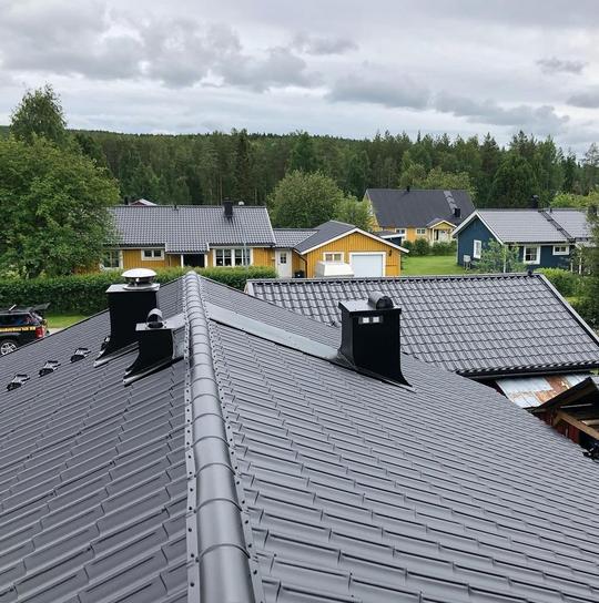 Vi ordnar förstås huvar, stosar, takstegar, snörasskydd, taksäkerhet och övriga takbeslag som matchar ditt tak.