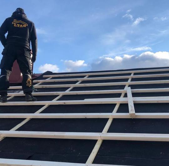 Vi riktar vid behov upp taket innan den nya plåten läggs!